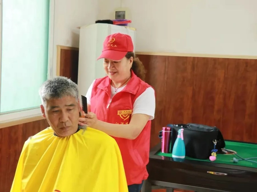 从此,在每一个周末,廖菊香把理发工具包一背,锁上店面大门,随团队走入各个乡镇敬老院,为老人们义务理发。