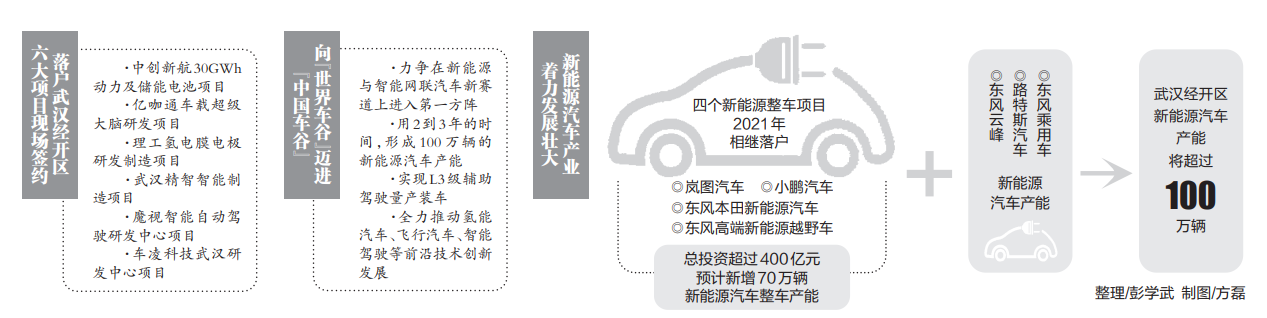 “一年之内引来四个整车项目,而且还是代表下一代汽车发展方向的新能源智能网联汽车,前所未有。”武汉经开区招商局负责人说,四个新能源汽车整车项目,总投资超过400亿元,预计新增70万辆新能源汽车整车产能,再加上东风云峰、路特斯汽车和东风乘用车的新能源汽车产能,武汉经开区新能源汽车产能将超过100万辆。