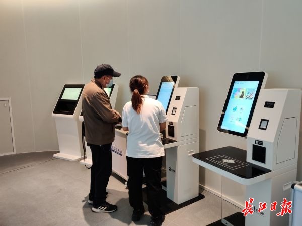 馆内工作人员全部身着统一的白色T恤并佩戴工作证。在书架前、阅读座位旁、自助借阅设备旁都可以见到他们的身影,“店员式”随时解答读者问题并维护馆内环境秩序。在公共阅读区,工作人员指导记者如何“掌上找书”:“关注青山区图书馆微信公众号,点击‘微图大厅’就可以在小程序中检索书籍,还可以续借图书、报名馆内活动。”