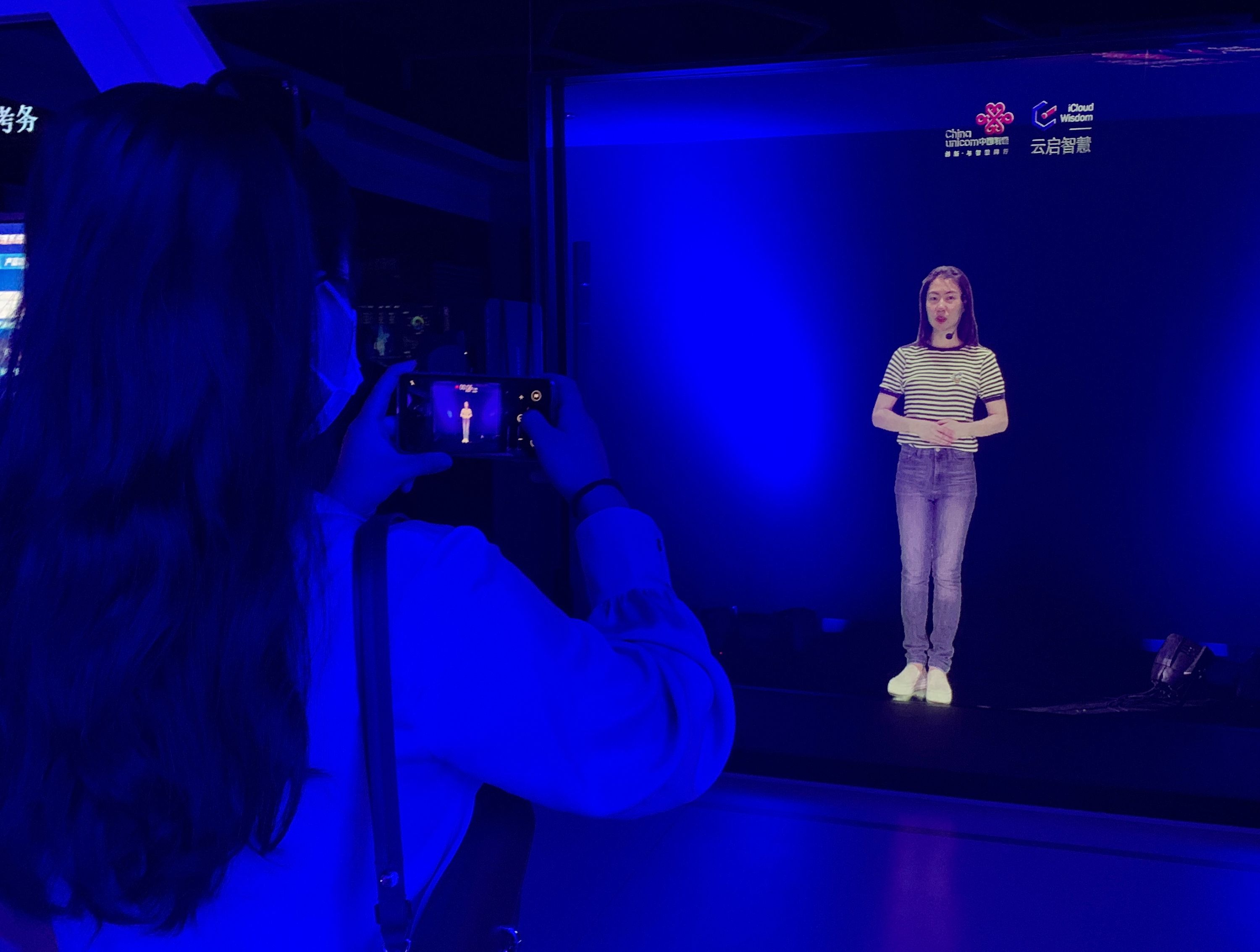 远程教育已不新鲜,但记者在云启智慧展厅看到,一名身在异地的教师以全息显示形象近在咫尺,清晰得如同真人站在眼前。