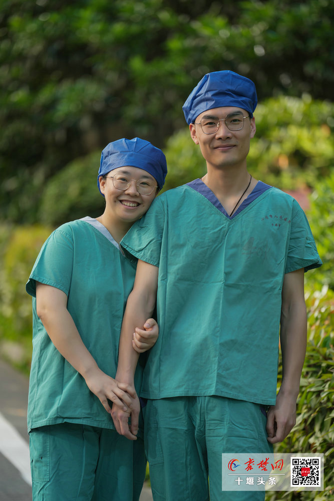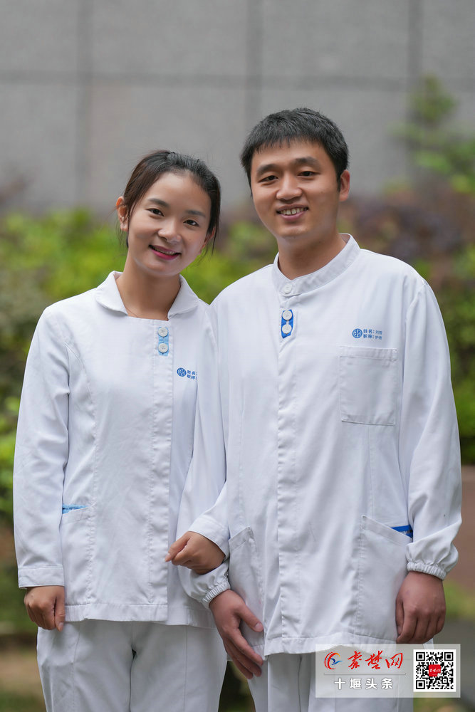 十堰市人民医院护士薛立志与同是护士的妻子杨琳合影。