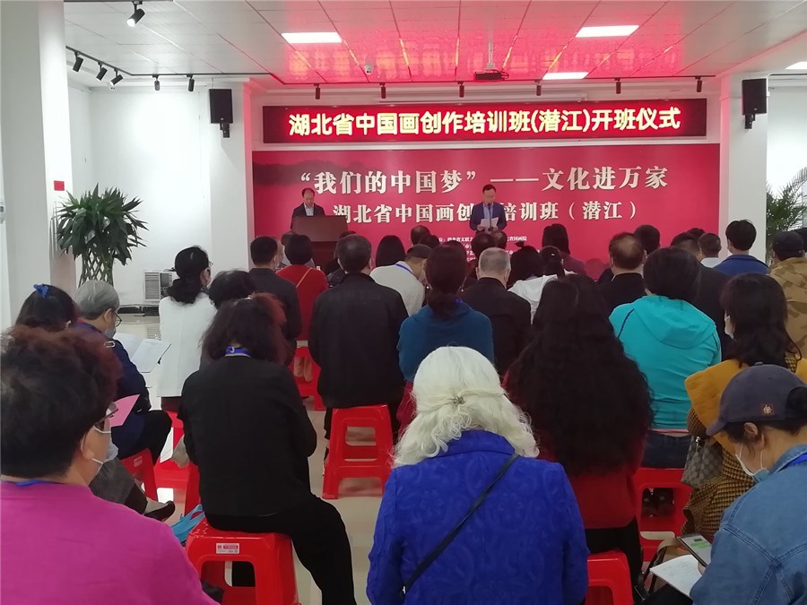潜江新闻网讯(记者 王宇杰)为进一步繁荣文学事业发展,激发文艺家们的创作灵感,5月11日,由省文联文学艺术院、省国画院、市委宣传部主办,市文联、市文化和旅游局承办的“我们的中国梦”——文化进万家湖北省中国画创作培训班(潜江)开班仪式举行。省文联党组成员、副主席、一级巡视员肖伟池,市委常委、宣传部部长王玉梅出席仪式。