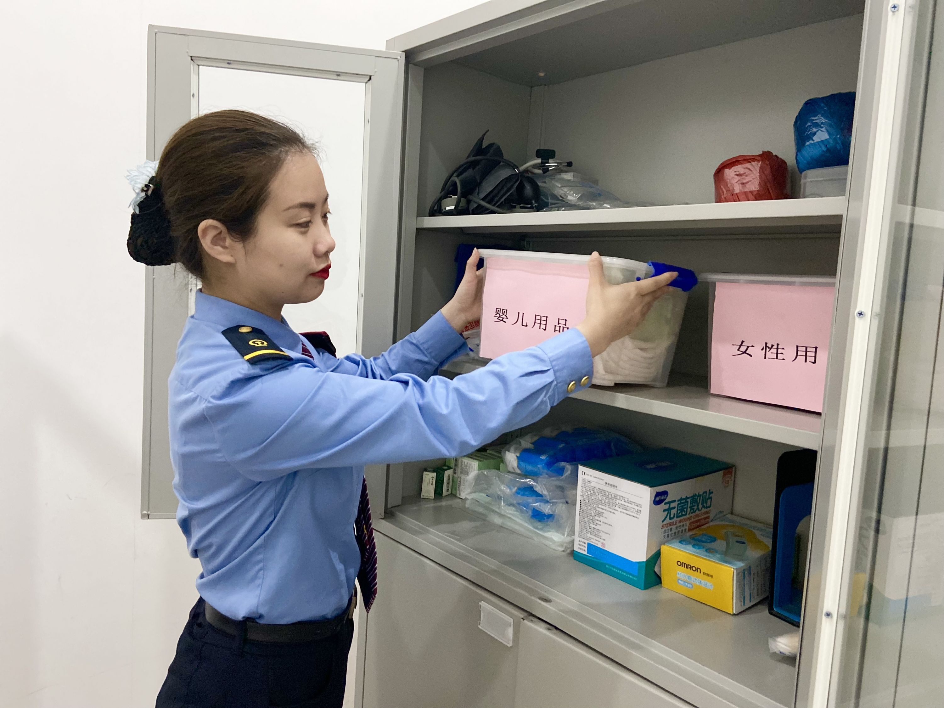 服务台的备品柜里,除了药品外,还有女性用品及婴儿用品。这是孙凡珺联合同事一起提议站里今年春运新增的,她说:“我们多想一点,旅客心里的疙瘩就少一点。”
