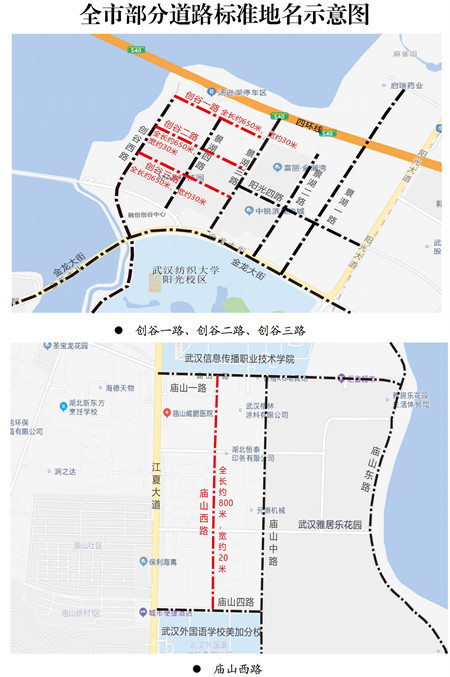 这也是国家新《地名管理条例》公布后武汉发布的标准地名通告,路名寄托对美好生活向往和区域发展的寓意更为强烈。