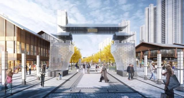 却月天桥横跨鹦鹉大道,将通过艺术景观天桥连接翠微路与显正街步行系统,同时串联周边远洋商区、中海商区、福星惠誉商区,汇聚成古城商业圈。