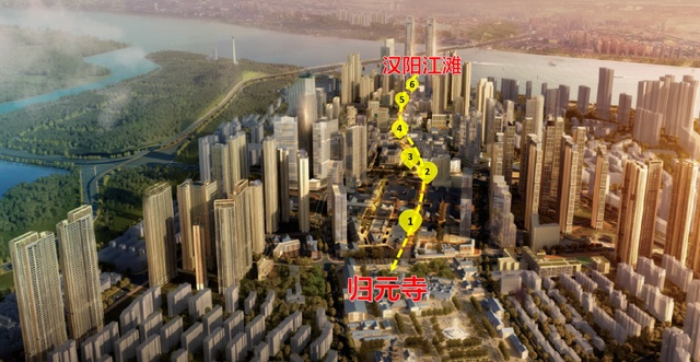 汉阳古城文化轴建设项目将建立起一条从归元寺至汉阳滨江公园的1800米全线段步行系统。这条西起归元寺路、东至晴川大道的古今交融文化商业中心轴,整体打造翠微路、却月天桥、显正街,将增设翠微路步行街、却月天桥、凤山门广场、汉阳树公园、钟鼓楼广场,以及连接汉阳滨江公园的城市甲板六大景观节点。