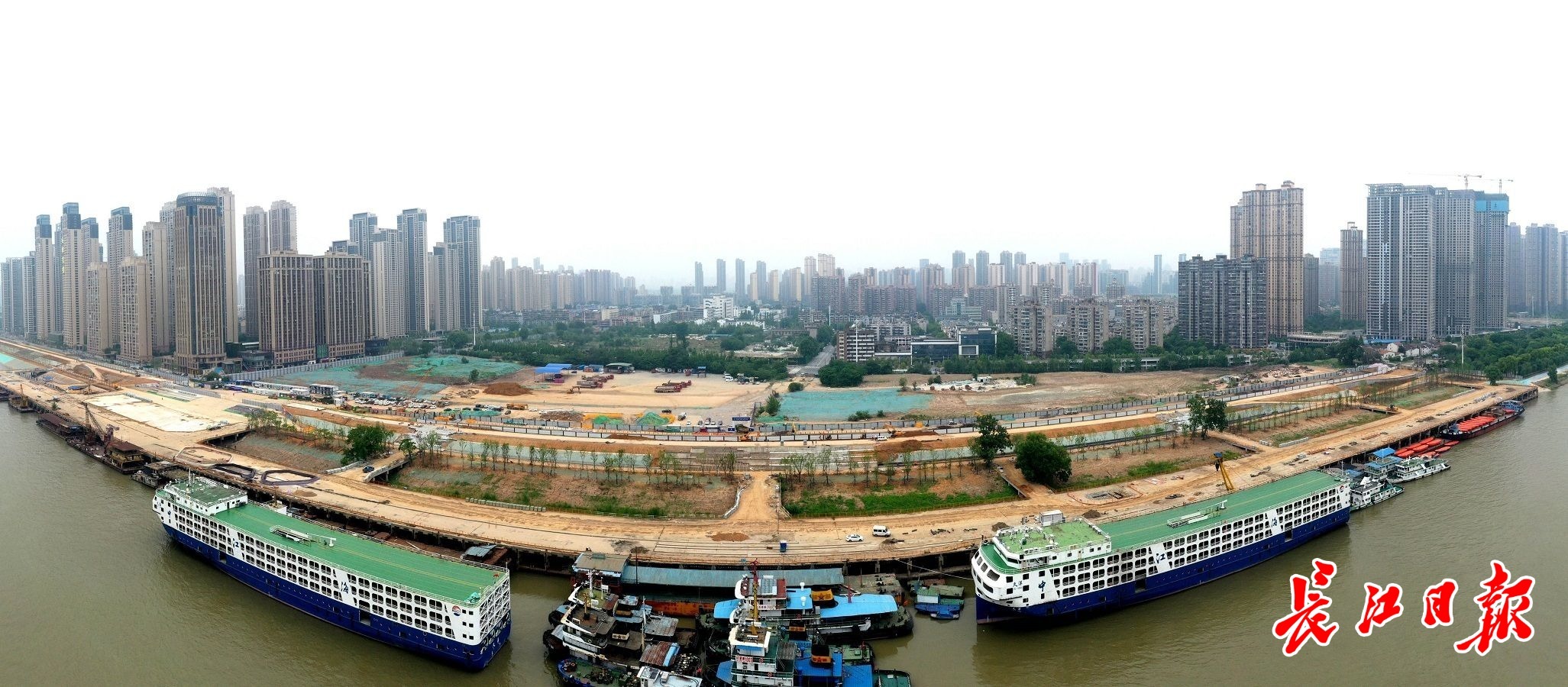 长江日报大武汉客户端5月12日讯(记者杨丝涵)工业码头变身水岸秀场。12日,长江日报记者在杨泗港都市T台项目现场看到一派热火朝天的建设景象。整个工程已完成70%,其中防洪工程已于武汉入汛前完工,目前正在加速进行工程景观建设。