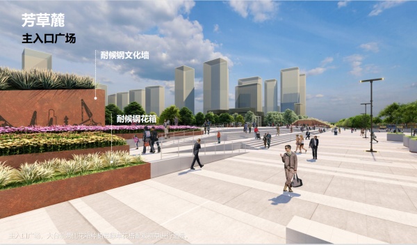 记者在现场看见,主闸口建设已完成,视野开阔,气势恢宏,在主闸口的两边还设有两条Z字形无障碍通道。效果图中显示,主闸口主色调为砖红色,并配有步梯及花坛。