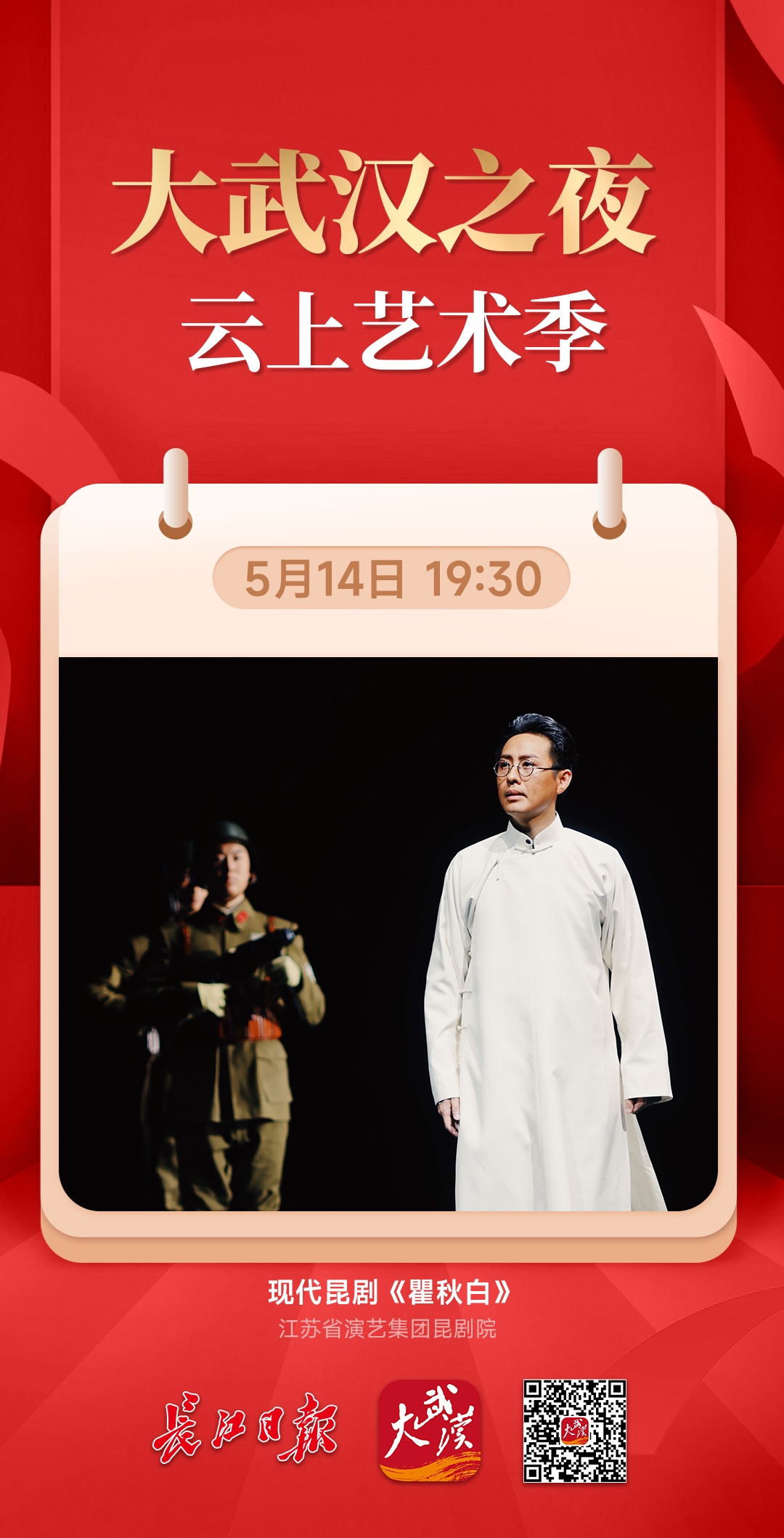 在年轻戏迷们中拥有高人气的施夏明此前曾多次来汉参与“戏码头”中华戏曲艺术节、第十七届中国戏剧节等活动,还曾在长江日报直播中走进过吉庆街体验武汉美食,和武汉戏迷结下了深厚的感情。昆曲套曲《眷江城》是江苏省演艺集团昆剧院专门为武汉创作的抗疫题材作品,施夏明曾携团队来汉在黄鹤楼唱响这一作品,一度成为一段佳话。此次携《瞿秋白》亮相“大武汉之夜”云上艺术季,施夏明表示,希望能再次将这部用心之作传达给武汉观众。