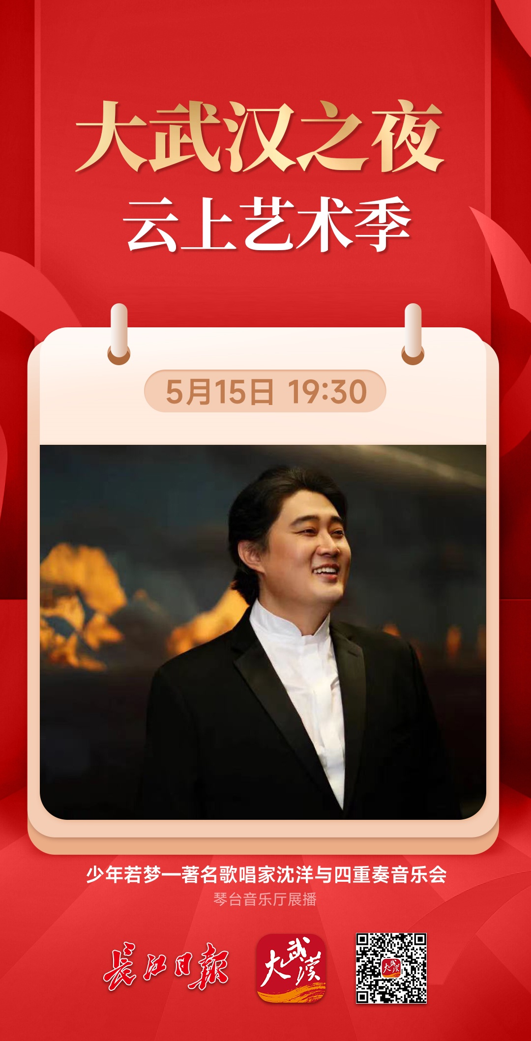 去年11月,沈洋在琴台音乐厅唱响马勒的“少年若梦”令人回味无穷,而他的大师课更是给热爱音乐的学子以中肯的建议、悉心的指导。15日晚的“大武汉之夜”,他将再次呈现第十届琴台音乐节的重磅演出之一《少年若梦——著名歌唱家沈洋与四重奏音乐会》,倾情演绎马勒前中期最经典的声乐套曲。此外,现场还将演奏马勒著名的室内乐作品《A小调钢琴四重奏》和被誉为“最美柔板”的《第五交响曲》第四乐章。