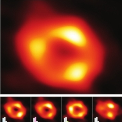 此外,黑洞周围的气体均以几乎接近光速绕着黑洞高速旋转。但Sgr A*相对于第一张黑洞照片的M87*要小1500倍,这意味着,气体绕M87*一圈需要几天到数周时间,但绕Sgr A*一圈只用几分钟,气体的亮度和图案快速变化,“有点像给一只正在追逐自己尾巴的小狗拍张清晰照片”,因此数据处理相对M87*来说更复杂。