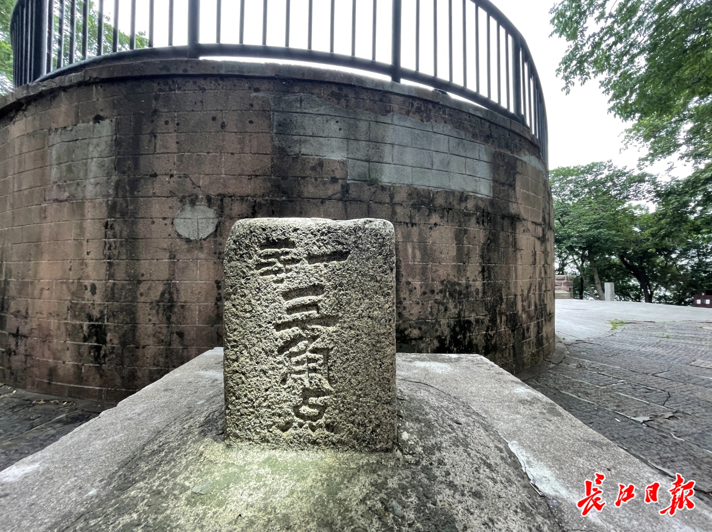 5月11日,长江日报记者前往蛇山探访,在蛇山山顶发现两座石碑,一座石碑上刻着“一等三角点”“测量总局”,另一座石碑上刻着“昌天文点”“谋本部陆地测量总局”。武汉大学测绘学院教授罗佳介绍,刻着“一等三角点”“测量总局”的石碑处,应是1952年的武汉城市三角测量的起算点——零公里点。