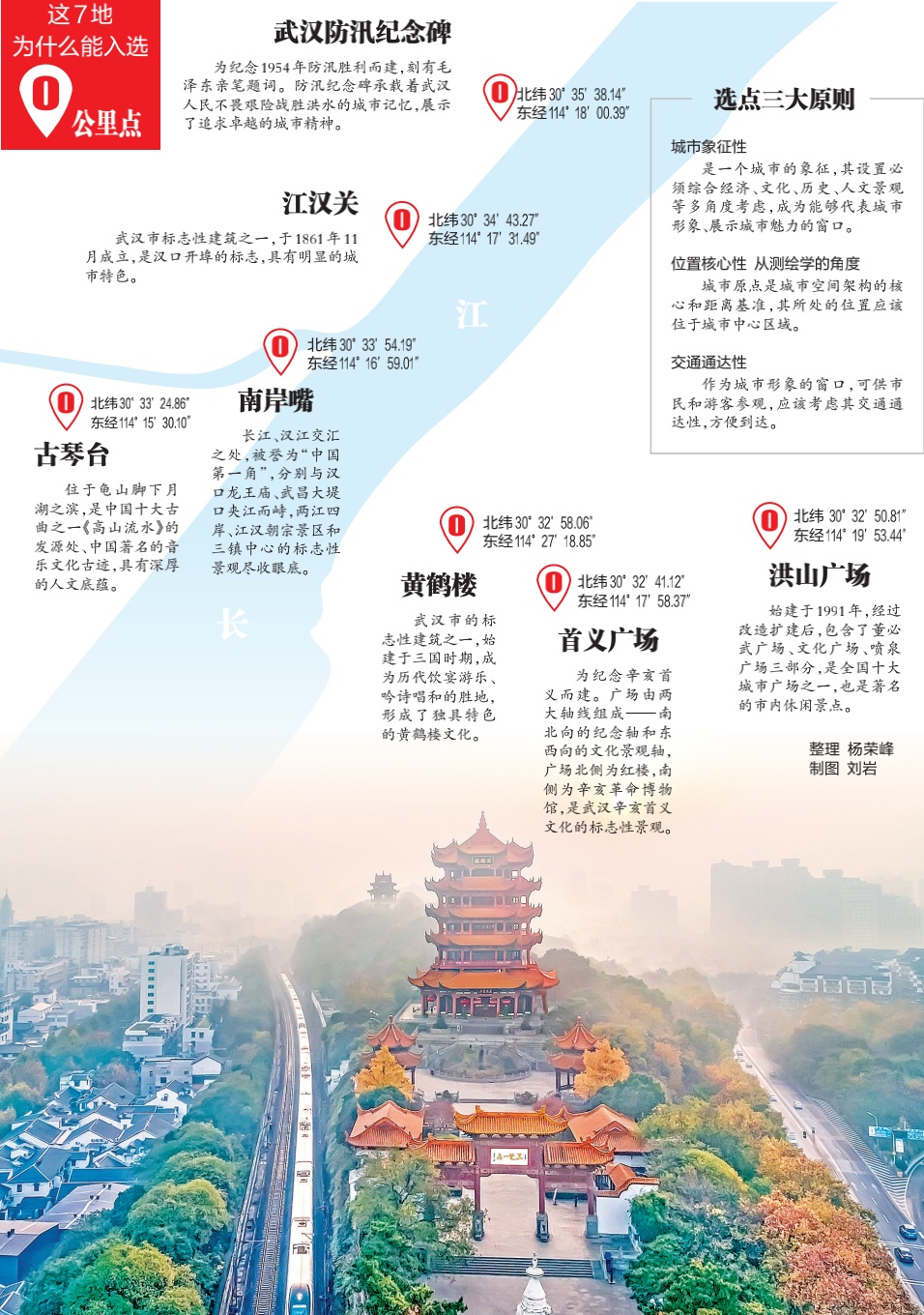 武汉市作为建设中的国家中心城市和长江经济带核心城市,城市零公里点应设置在哪里?市交通运输局相关负责人告诉记者,早在2016年,武汉市交通运输局、市自然资源和规划局、市城乡建设局、市公安局交通管理局等8家单位组成研究小组,经多番调研及研究,目前已经提出了7个备选方案,分别是武汉防汛纪念碑、洪山广场、首义广场、南岸嘴、江汉关、黄鹤楼、古琴台。下一步,相关部门将深化城市零公里点研究,确定后及时向社会公布。