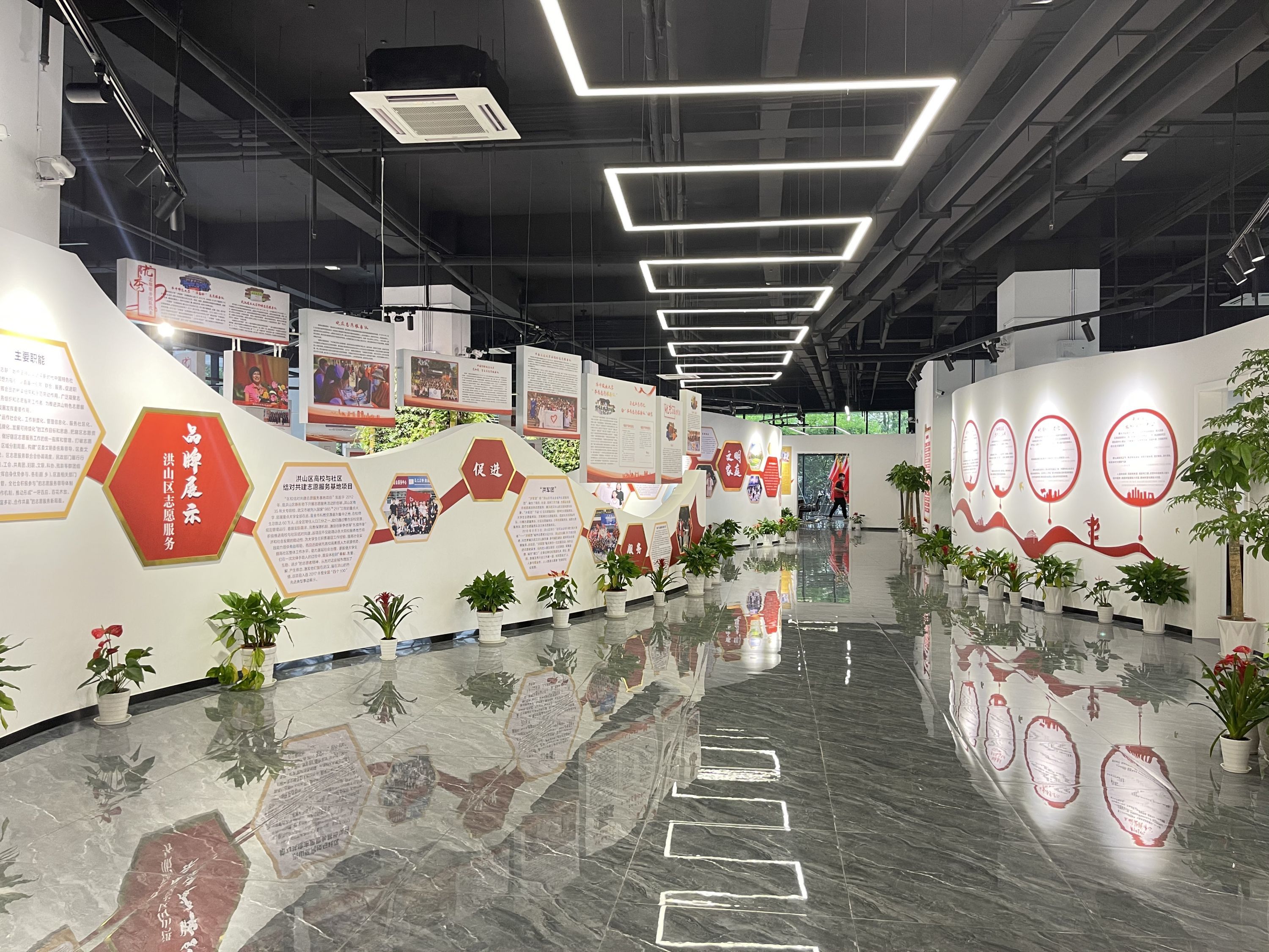 洪山区新时代文明实践中心,位于洪山区文体大厦一楼,占地面积1008平方米,整体风格以“志愿红”为主。设置有全区精神文明建设指挥中心、文明成果展示中心、志愿者骨干培训中心、文明实践活动中心等功能板块,集中体现大学之城、志愿之区、洪山好人、道德模范、文明单位等鲜明特色。