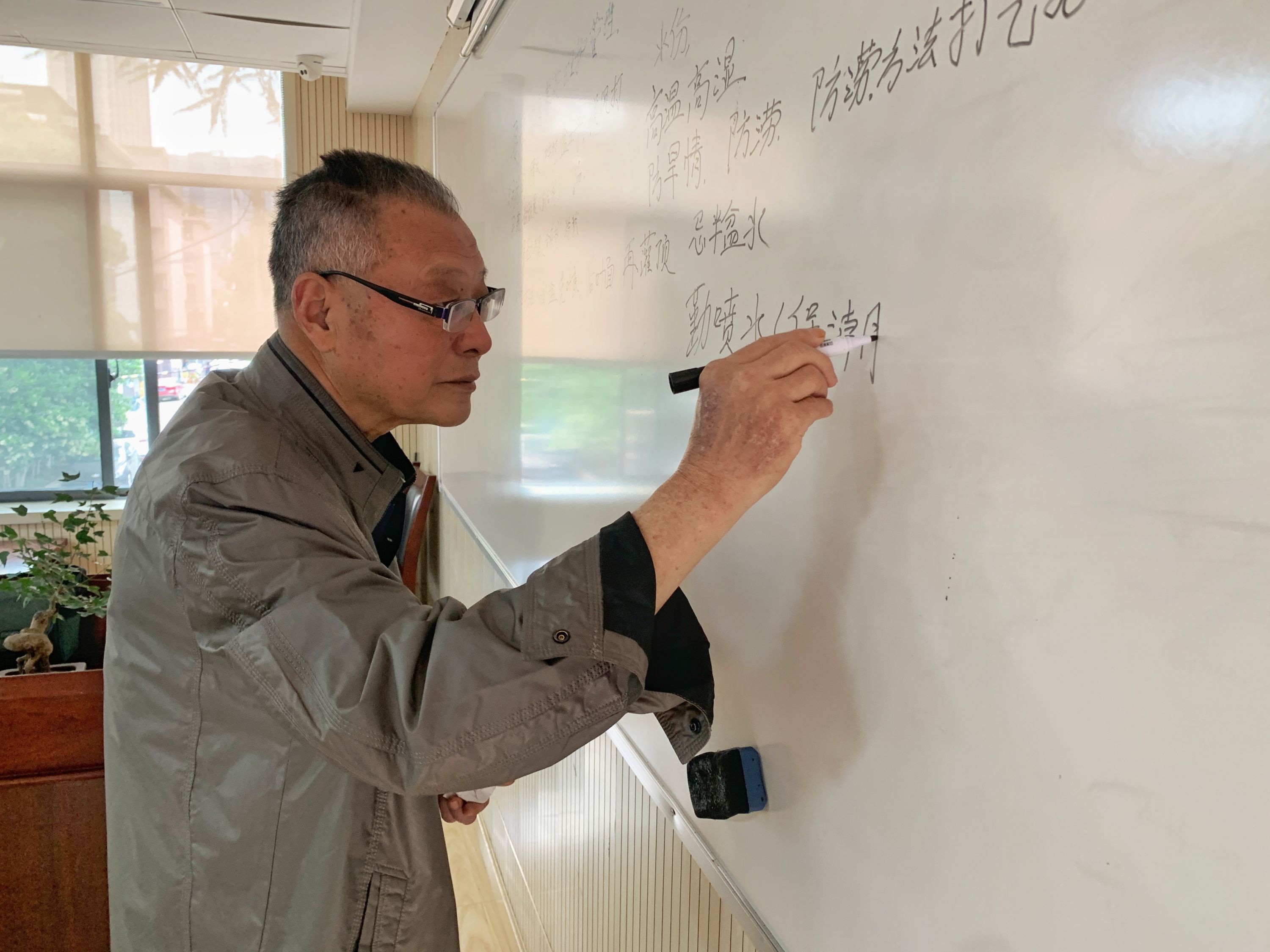 尽管已经72岁,但讲台上的李元炎声音洪亮、思维敏捷,面对直播镜头滔滔不绝,时而转身板书,“专家范”十足。