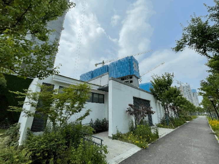 13日中午,长江日报记者探访发现:该处口袋公园内的公厕和在建的“华润二十四城”在建楼盘仅一墙之隔。该公厕占地百平方米左右,为框架结构,整体错落有致,设计配建有典雅的大堂。通过公厕紧闭的卷闸门,记者观察可见里面灰色瓷砖铺装,还做了美缝,安装有液晶电视和自动喷淋和烘手设备,里面的智能人脸识别出纸机仍在工作,屏幕还在显示:“请注视这里,三秒自动出纸”。