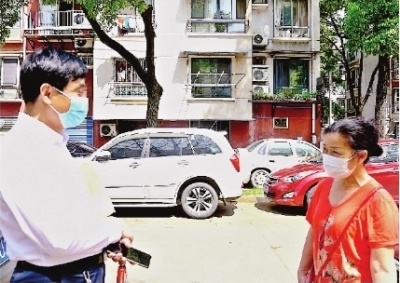 小区居民正向纪光伟(左)咨询健康问题。通讯员罗伟骏 摄