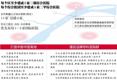 在长江新区、光谷、车谷等地优先布局1—2家国际医院。争取将国际医院项目纳入市级重大项目库,对国际医院来华行医的外国医师集体办理短期行医许可。确定4—5家医院,开展国际化医院建设。建设1家中医特色明显的国际医疗保健机构。在国际化社区配套建设社区卫生服务中心,探索设立外籍人士服务窗口。鼓励和支持亚心总医院等民营医疗机构参与国际化医院建设,推动医疗机构与国际知名保险机构深度合作。