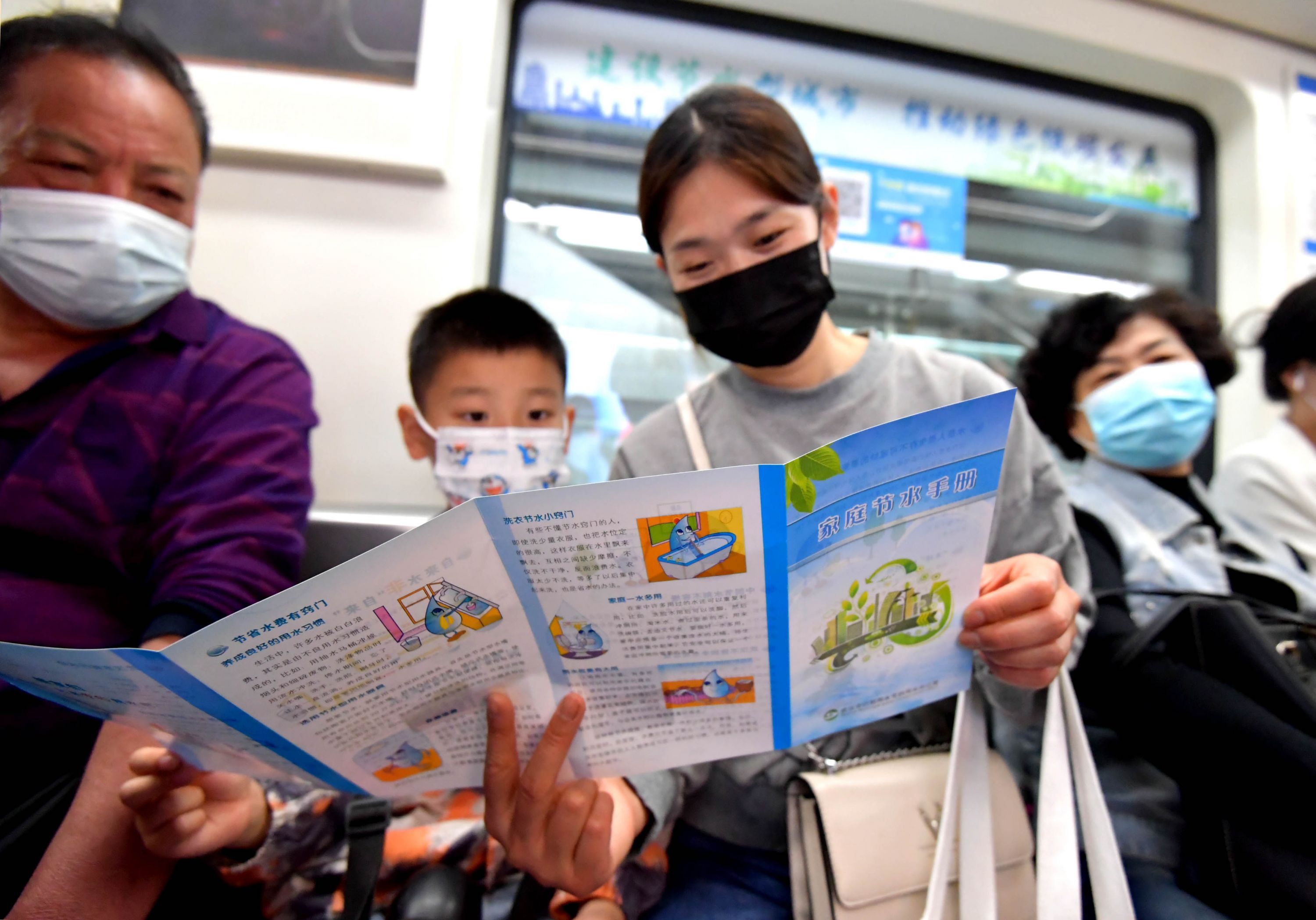 市民付女士趁今天周日,准备乘坐3号线带儿子去公园玩,正好遇上了“节水地铁专列”。武汉市节水办志愿者将宣传折页送到付女士儿子手中,并将水宝玩偶送给他。“上周我还带他去了武汉节水科技馆,他在里面玩得很开心,学了不少与水相关的知识。”付女士表示,每个人都有责任节约保护、科学利用水资源,尤其是孩子的节水意识要从小抓起,“节水专列里的海报画风清新可爱,不仅大人喜欢看,小孩子也会被吸引。”