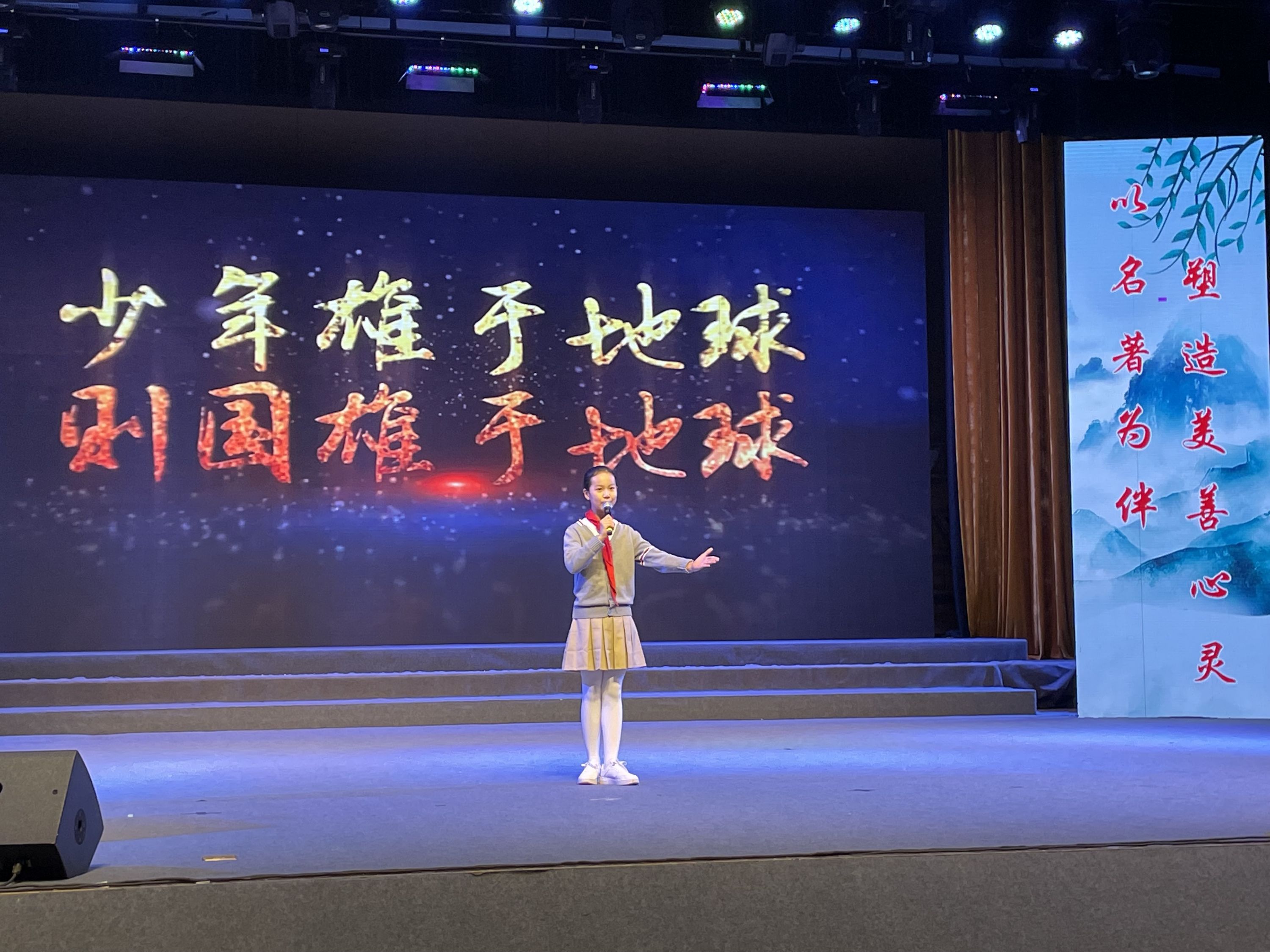 “故今日之责任,不在他人,而全在我少年。少年智则国智,少年富则国富,少年强则国强,少年独立则国独立,少年自由则国自由,少年进步则国进步……”现场,武昌区中华路小学橡树湾校区五年级学生孔令君现场朗诵梁启超的《少年中国说》节选内容,用铿锵有力的话语,激发出同学们的深深爱国情。随后,演职人员和师生代表逐一登台,朗诵诗歌《中国脊梁》《汨罗江的追思》,以及《如梦令》《正气歌》等经典名篇……每一段诵读都生动感人。