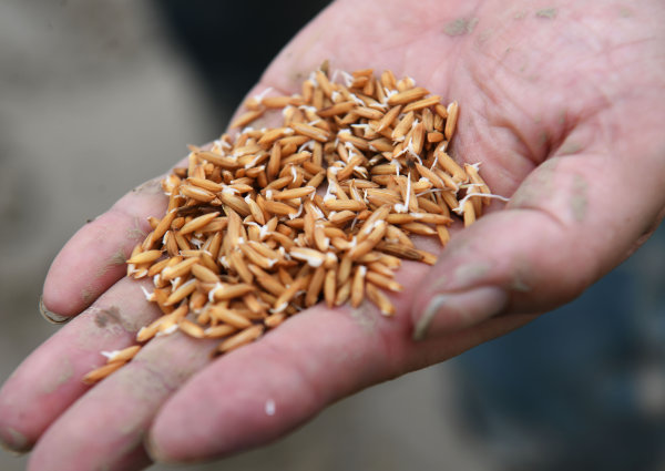 水稻种子首先经过浸种发芽到一定程度才能播种。