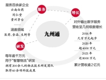 作为物流行业数字化转型“顶流”的九州通,对外输出数字服务业务板块营收也在呈几何级数增长。