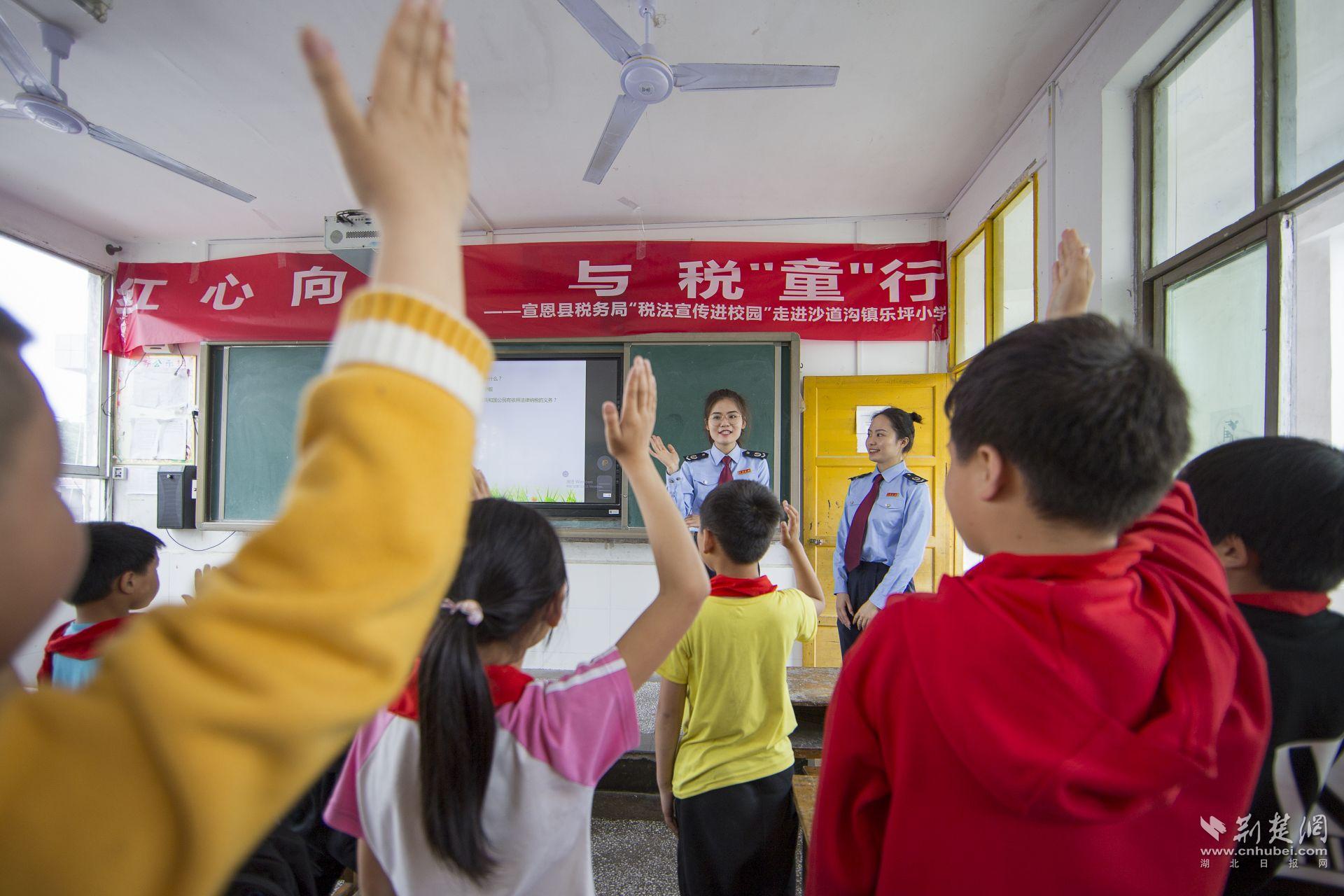 荆楚网(湖北日报网)讯(通讯员唐今朝、陈明、李姮燏)5月13日,正值第31个全国税收宣传月,宣恩县税务局组织税务干部来到宣恩县沙道沟镇乐坪小学,开展“红心向党,与税“童”行”税法宣传进校园活动。