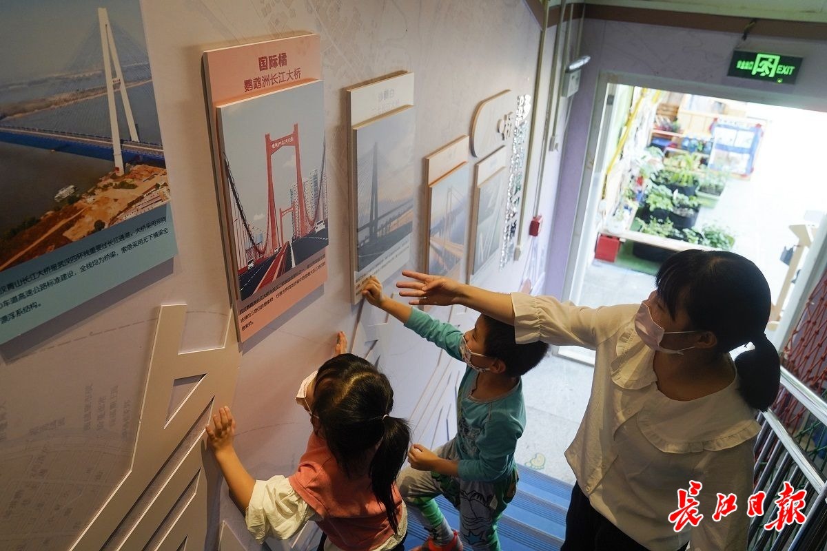 老师向小朋友们介绍桥梁。长江日报记者彭年 摄