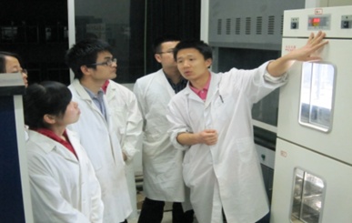 汪教授和学生在实验室。