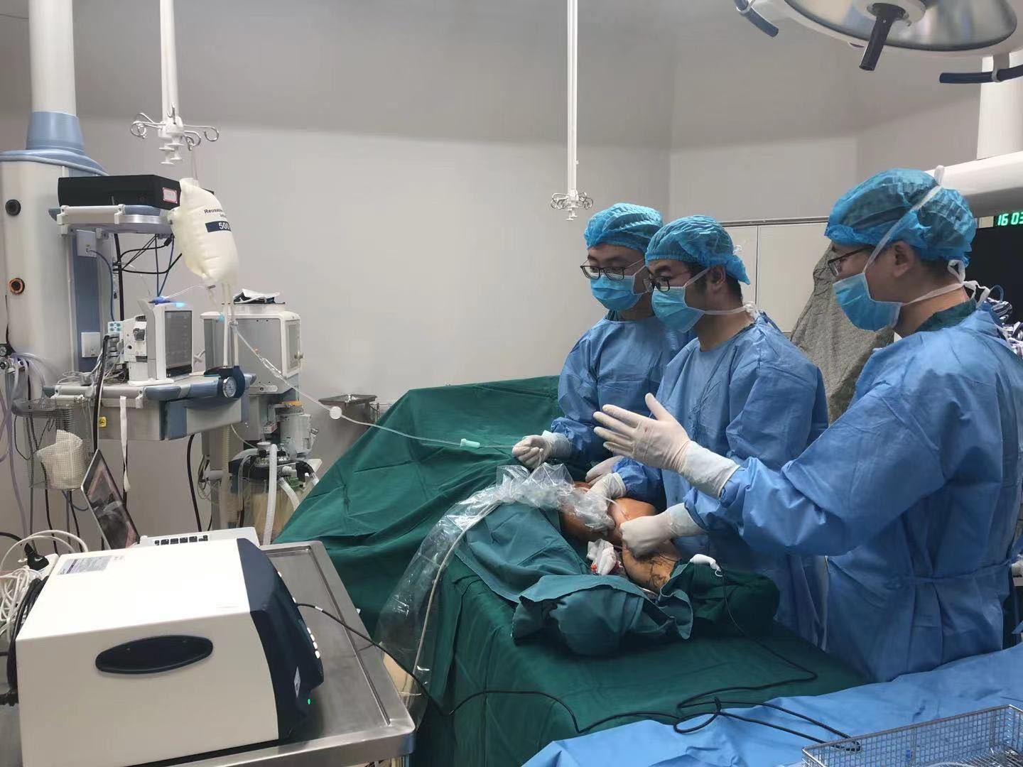 入院时李女士已经失血性休克,血压低至55/40毫米汞柱,血色素不足之有正常人的1/4,预计出血在2500毫升。闻讯赶来的血管外科主任钟若雷和急诊科立即展开抢救,经过抗休克、输血、止血治疗后,李女士的生命体征渐趋平稳,但必须马上手术解决静脉曲张,防止进一步出血,李女士当即被推进手术室。在超声引导下,钟若雷团队通过射频消融只用2个小时就完美解决了静脉曲张。