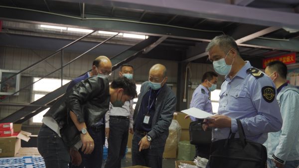 5月12日上午,武汉市市场监管局与黄陂区市场监管局、黄陂区公安分局组成联合执法组,对黄陂区一直播涉假服饰仓库进行突击执法检查。