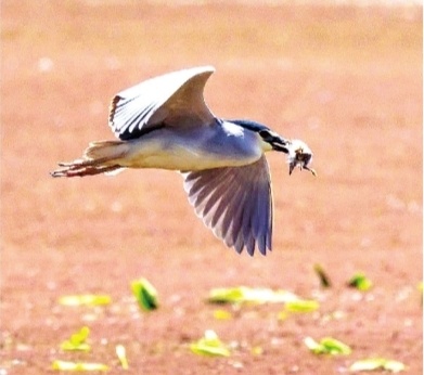 清晨,一只早起的白鹭叼着刚捕到的鱼准备享用。