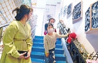 长江日报记者看到,这座小小的“桥梁博物馆”利用了每层楼的楼梯间空间。在第一层楼梯间里,孩子们能看到武汉各种桥梁的照片和历史介绍。最吸引孩子们眼球的是特别的楼梯扶手,被做成了武汉长江大桥模型,像是把钢铁铸造的大桥“搬”进了幼儿园。楼梯间的墙壁上挂着16件泥塑作品,复刻了武汉长江大桥上的雕花板,让孩子们既能感受到大桥的雄伟,也能近距离欣赏它的秀美。