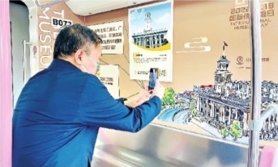 长江日报记者看到,“博物馆专列”内部主题颜色呈浅褐色,显得既庄重又活泼;“博物馆的力量”“红色基因 百年芳华”等各种字样,为即将到来的国际博物馆日渲染了氛围。19家博物馆的外观以手绘图的形式呈现,颇具现代感。“武汉的‘江城’美名出自‘诗仙’李白的哪一诗句?”车厢内还设置了知识问答、手绘博物馆游览地图等互动方式,乘客可以通过扫描相应二维码获取更多场馆信息。