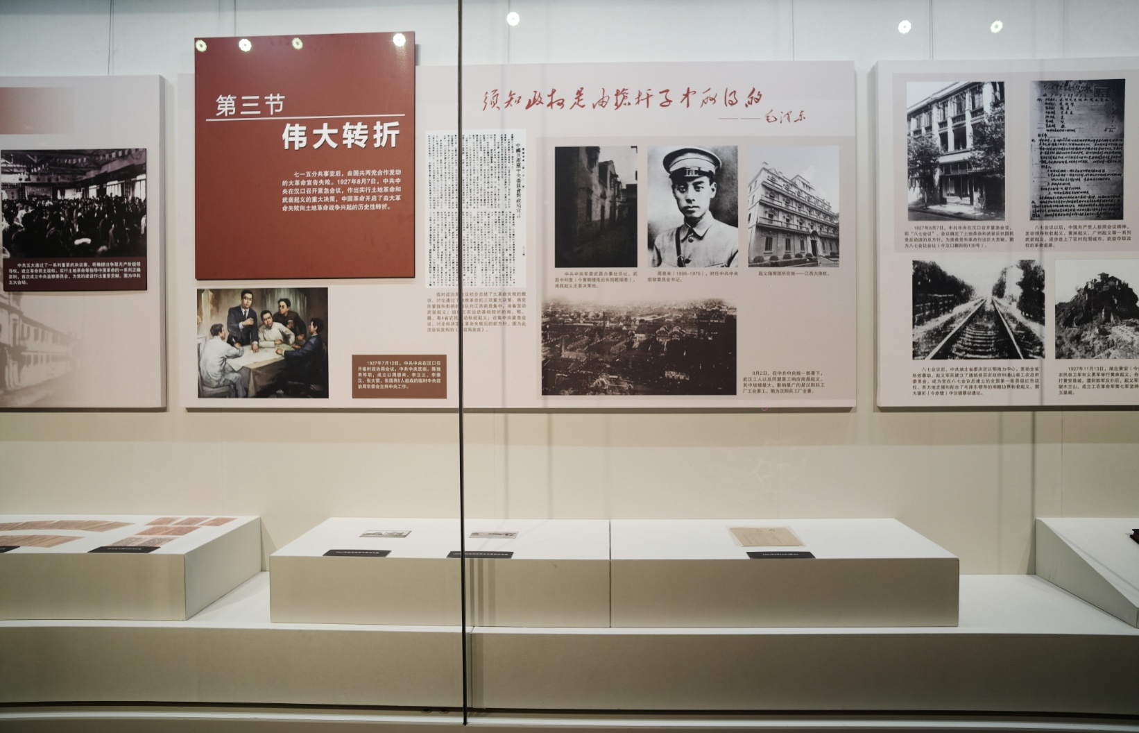 展示了大革命时期,武汉成为大革命中心和第一次国共合作的重要舞台,从而掀开了武汉近代史上光辉的一页。毛泽东、周恩来、瞿秋白等老一辈革命家集聚江城;中共五大、八七会议在武汉召开;南昌起义、秋收起义在武汉决策;党的中央监察委员会在武汉首创;从国民革命到土地革命的历史转折,在武汉开启。史料《京汉工人流血记》,白劳德和汤姆在武汉出席会议照片,1923年1月6日《劳动周报》,1927年3月11日《群众》、《向导》周报影印版等展品,记录了那段流血牺牲、英勇奋斗的历史。