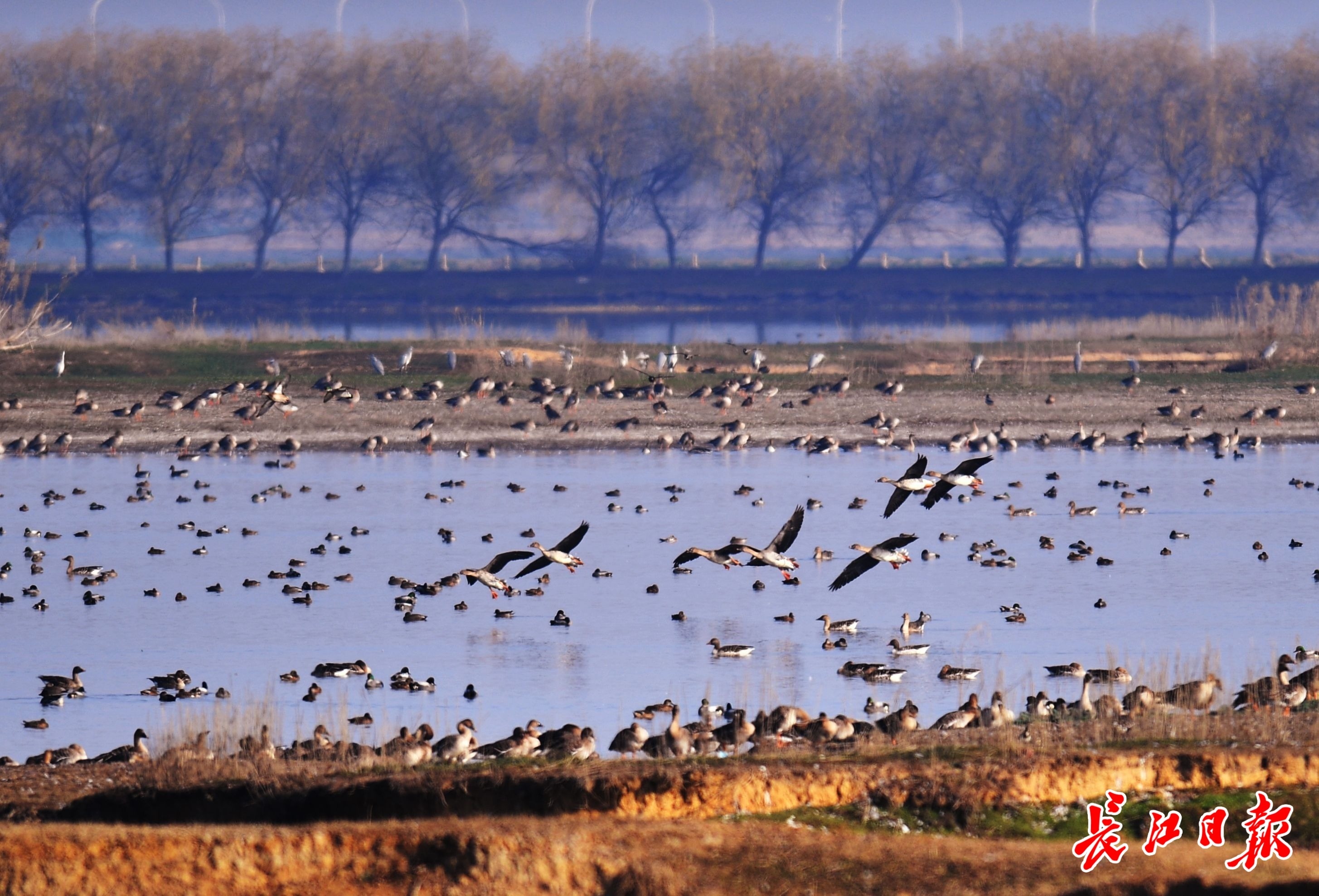 在府河湿地天鹅湖,越冬的鸟群在喧闹声中迎来了全新的一天。长江日报记者喻志勇 摄(资料图)