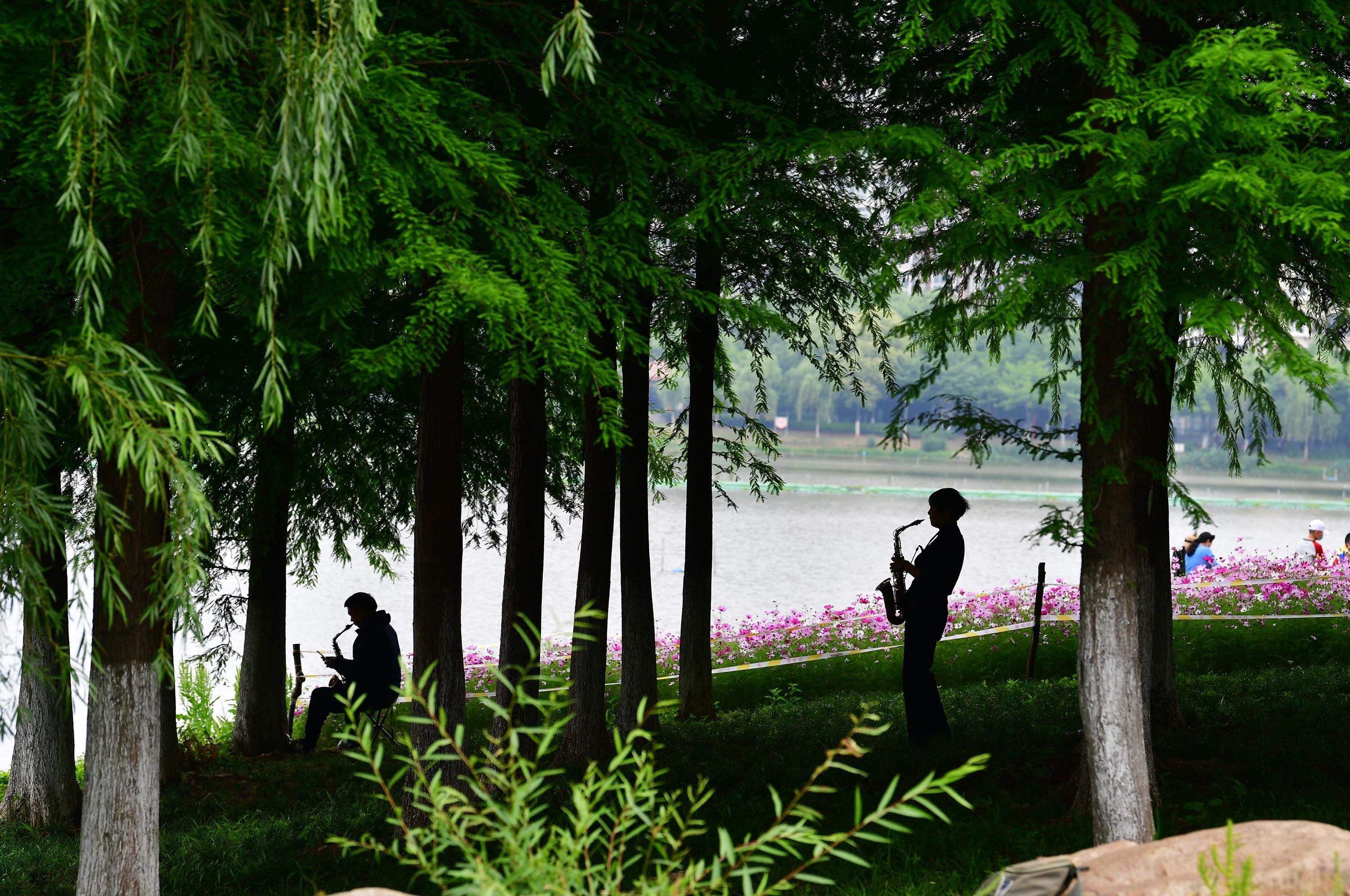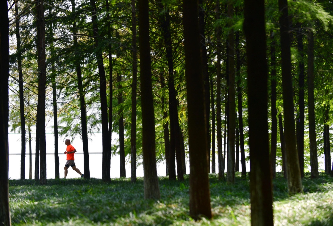 大树浓荫下,跑步、打拳、骑行……苍翠环抱,清新扑面;
