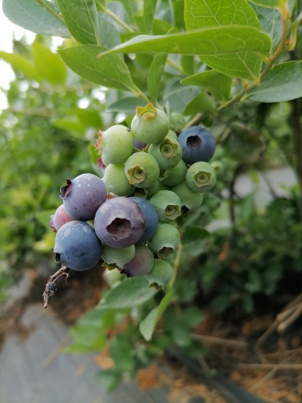 园内采摘区共种植蓝莓100余亩,包含3个品种,采摘期可以持续到6月中旬。目前,蓝莓品种“奥尼尔”已进入成熟期,具有肉质细、汁液多、酸甜适口的特点,可溶性固形物达到12%。其余两个品种“密斯蒂”和“夏普蓝”也将在5月下旬进入成熟期,3种蓝莓口感、甜度及果实大小各有特点,用蔡红霞的话说,“偏甜还是偏酸,大一点还是小一点,可以按自己喜好随意采摘。”