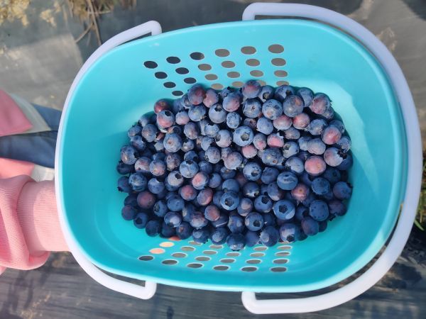 “蓝莓不能搓洗,要保留果皮上的花青素,冰一下会更甜。”在采摘区入口,工作人员边称重边给张女士说着蓝莓小妙招。“我喜欢吃蓝莓,特意过来采摘。”张女士家住附近,在抖音上看到推荐后和家里人骑着电动车就来了,看着自己顶着太阳摘出的“战利品”很是高兴,“吃着挺甜的,这一斤多回家就要吃完。”