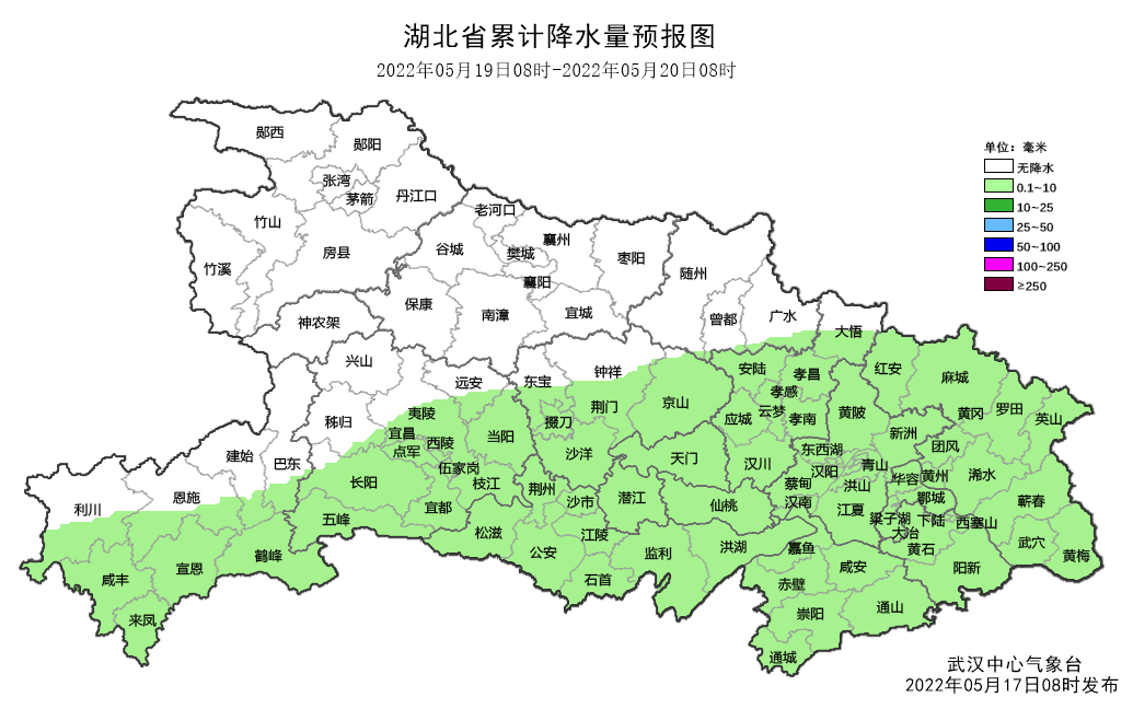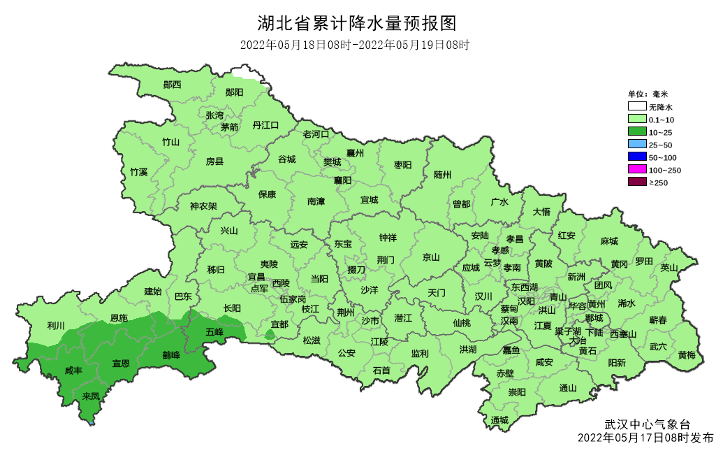 鄂西北、江汉平原北部、鄂东北西部阴天到多云;其他 地区阴天有小雨,局部中雨。