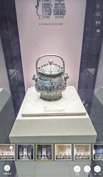 今年五一假期,湖北省博物馆推出新馆VR全景展示,网友在家可以全方位浏览新馆6个展厅的640个展陈场景,文物就在眼前,可伸缩放大,视野可360度移动,仿佛身临其境。远在上海居家的网友,也能在网上VR全景欣赏湖北省博物馆的精品文物。