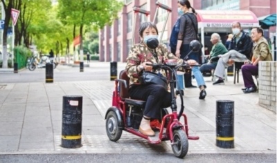 范女士腿脚不便,靠一辆电动小车和拐杖出行。下午3时,她熟练地出小区,穿过两个路口,来到正在下棋的邻居身边观战。两个路口及人行道都是缘石坡道,电动车上下顺畅。范香云说,她感觉道路改造提升切实考虑了居民的需求,“我在这个小区住了五六年,前几年路不好走,上下人行道有很高的坎子,我出门不多,实在是不方便。现在路修好了,我每天都要出来转一转”。