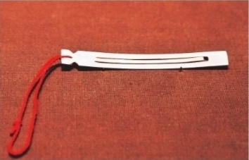 进入记者视野的第一件乐器,是一枚约两寸长的骨哨,灰绿色,中间有一个开孔。