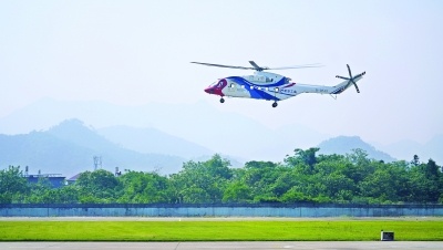 AC313型直升机是我国第一款自主研制的大型民用直升机,整机性能达到国际第三代直升机水平,填补了我国大型民用直升机研制的空白。AC313型直升机最大起飞重量为13吨,可一次性搭载18名乘客,最大航程为1040公里,具有高安全性、可靠性和舒适性,应用范围覆盖我国全疆域,被广泛用于人员和货物运输、搜索营救、抢险救灾、反恐维稳、医疗救护、旅游观光、公务飞行等航空领域。
