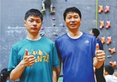 陈刚教授和儿子陈李昊在攀岩馆。长江日报记者喻志勇 摄