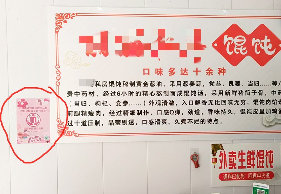 当你吃饭、睡觉、购物时,如果看到贴有“爱心商家”标示贴的店铺,都可以使用公益积分享受“爱心折扣”。