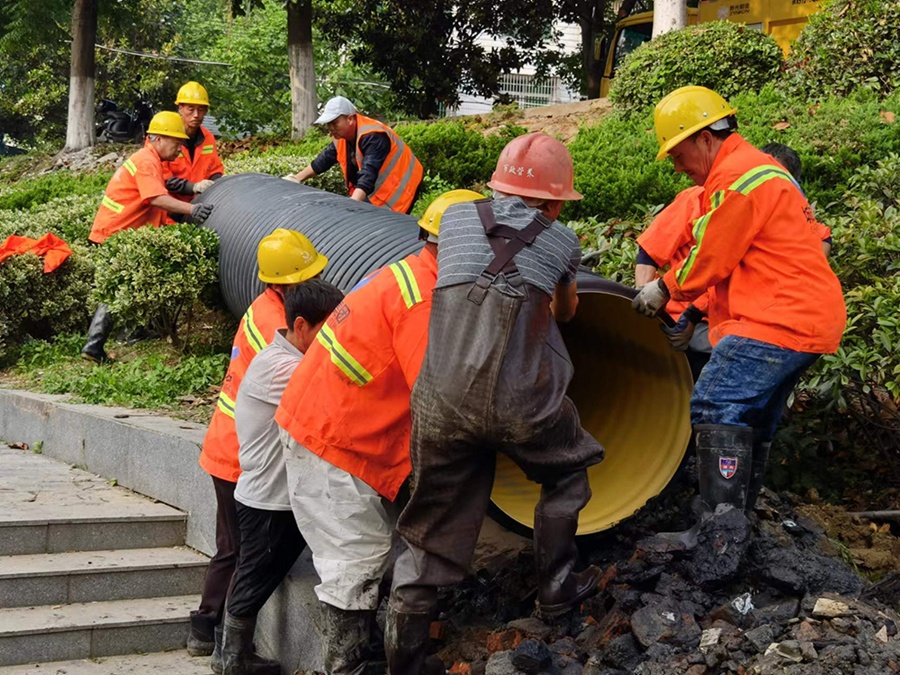 5月12日,市城发置业集团抢修队伍赶往现场,对堵塞区域进行清淤疏通整治。截止16日,共清除转运淤泥20余m³,新增φ800排水管8米,新修排水管检查井4座。