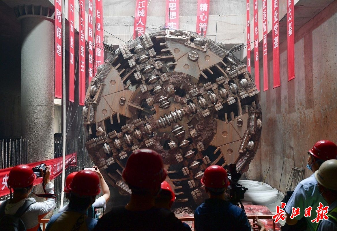 “昆仑33号”盾构机进入接收井。长江日报记者李永刚 摄