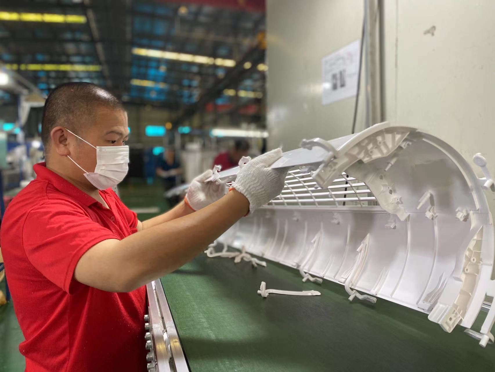 长江日报大武汉客户端5月18日讯 5月,正是空调生产旺季,武汉硕冠塑料有限公司(下称“武汉硕冠”)的空调外壳生产厂房内,19台注塑机正24小时运转,满足订单需求。耕耘注塑制品赛道十多年,这家位于东西湖慈惠街胡家台大队的高新技术企业,专研注塑技术,不断技改,成为TCL空调的核心供应商。