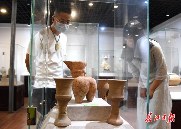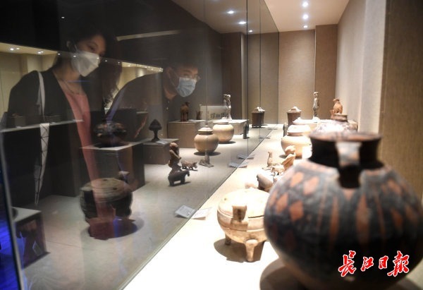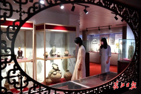 市民在武汉市贞元博物馆参观古代陶瓷。
